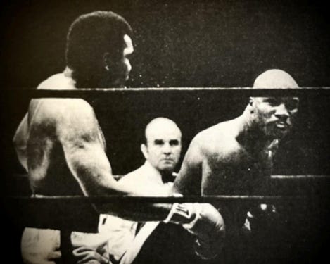 It was a déjà vu of sorts, harkening back to the third war “Thriller” against Joe Frazier. That particular battle was stopped by Frazier’s trainer, Eddie Futch, against his wishes at the end of round 14. Although ahead, Ali was physically spent and may not have been able to make it for the 15th. Muhammad, who immediately collapsed in his corner after being informed of the stoppage, later admitted that he wanted to quit. Both of Joe’s eyes (he was already legally blind in one) were nearly swollen shut, but he still wanted to go; it was target practice for the champion. Futch, a veteran in the game, had been down this road before and seen enough.