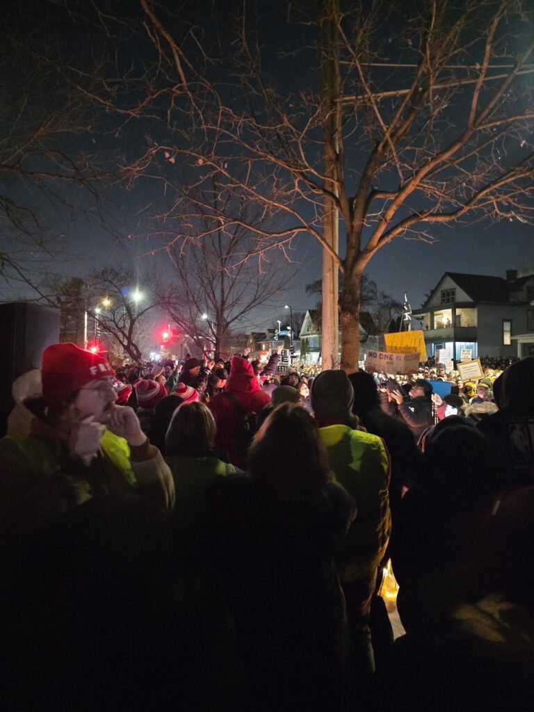 It was also full of care, the kind of care that rarely makes a headline, but tells you what decency looks like when institutions fail. Zachary, who was working the vigil, handed out gloves, warm tea and candles so people could stay warm enough to keep standing. “Our voices are heard and the community is supported and protected,” he told me.