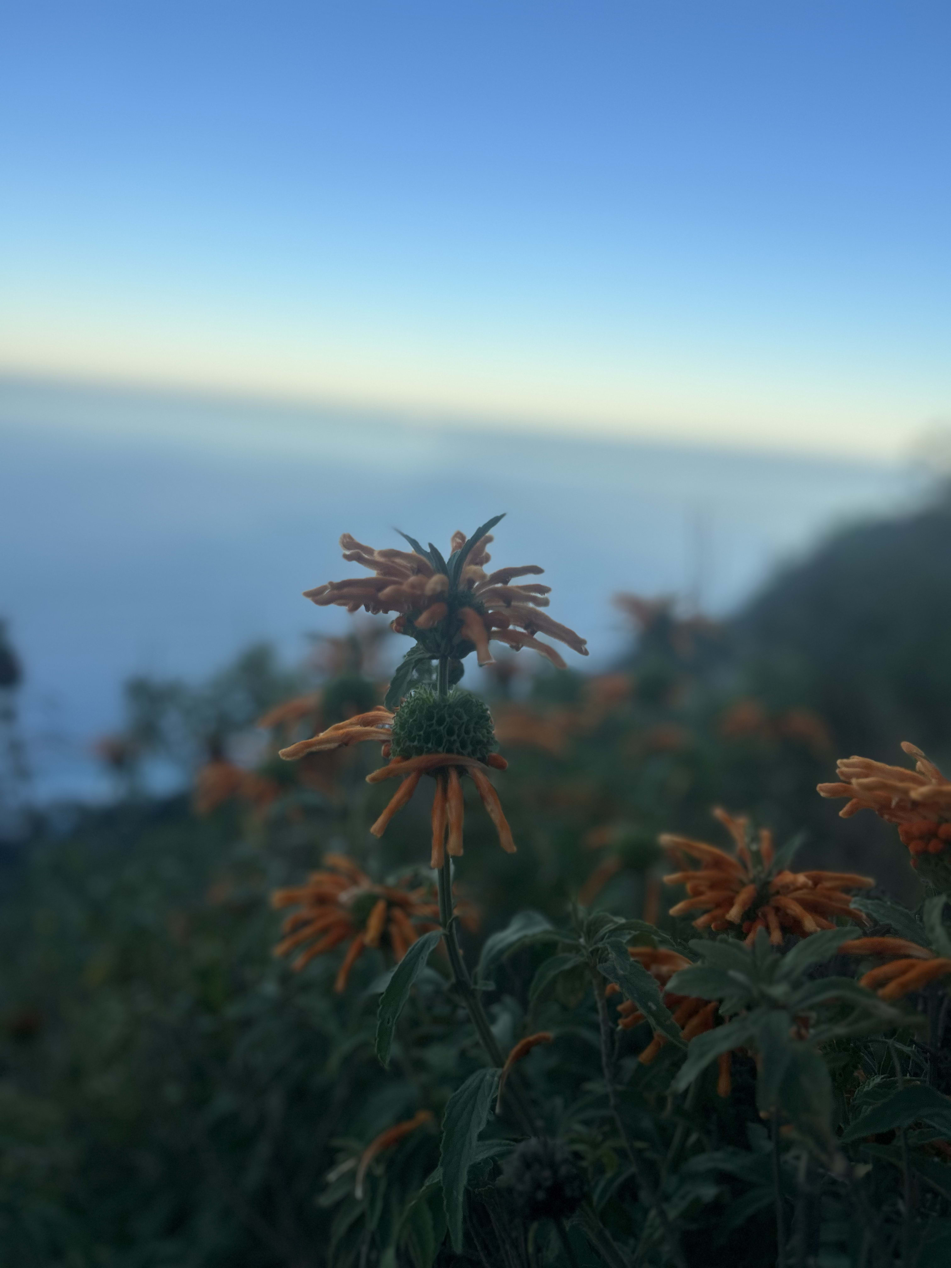 Leonotis leonurus, known as Lion’s Tail or Wild Dagga. A flame-colored bloom rising from the rocky slope, each petal unfurling like an offering. Its orange clusters stood out against the stone as if the mountain itself had lit torches along the path.