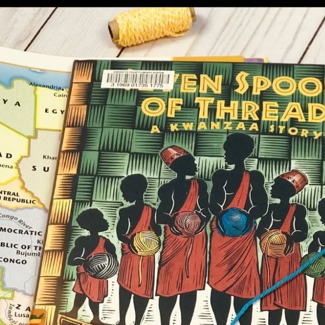 Published in 2000 and illustrated by artist and educator Daniel Minter, “Seven Spools of Thread” discusses the seven principles of Kwanzaa- umoja, kujichagulia, ujima, ujamaa, nia, kuumba and imani. The narrative traces the story of seven bickering Ashanti brothers who are instructed by their father to make gold from different-colored silks. They learn how to work together, spreading their help across the town. “Seven Spools” also covers the origin story of the Kente cloth.