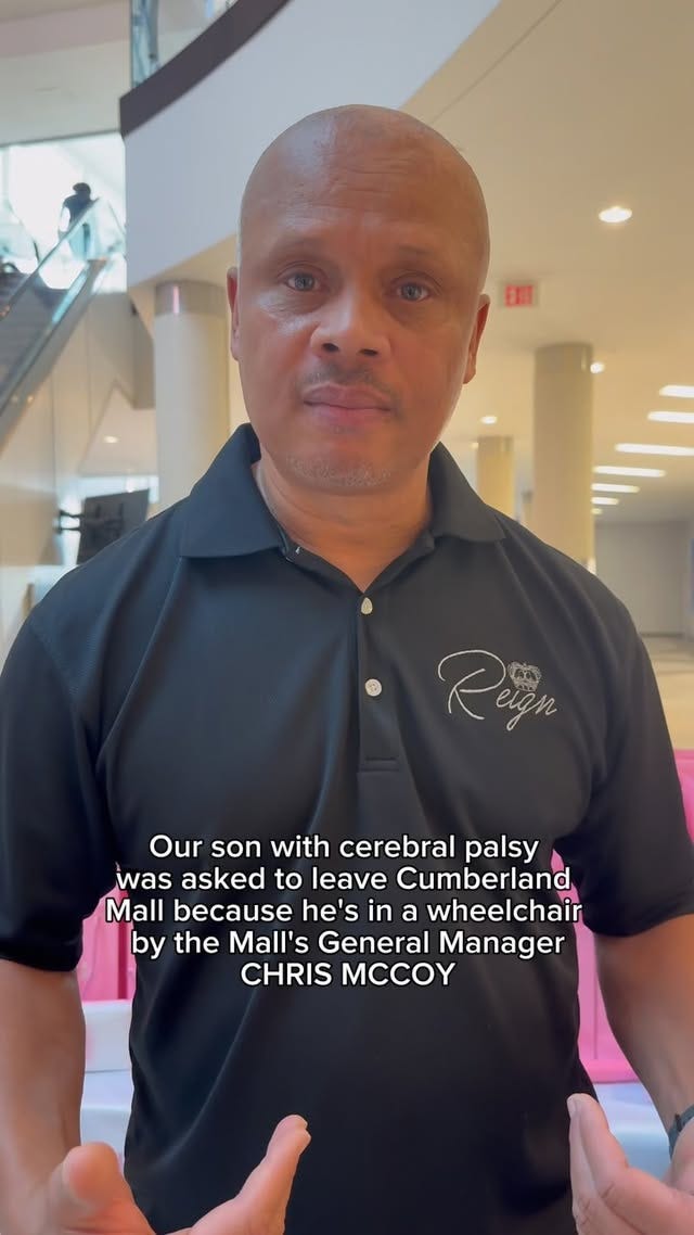 A Georgia-based family business recently accused the Cumberland Mall of discrimination after their son, who has cerebral palsy, was forced to leave the establishment for being in a wheelchair.