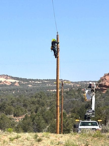 Working by his side for the week were Village Public Works foreman Tanner Bussey, lineman Lane Dykeman, apprentice lineman Alex Kraus and groundman Lucas Valley. Yellow Springs was among 41 municipalities from 16 states that participated in this year’s Light Up Navajo effort. The organization’s goal for 2024 has been to electrify around 300 homes over the course of 13 weeks this summer.