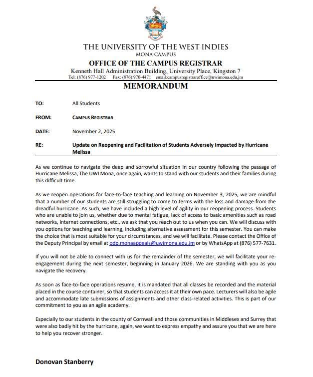 According to reporting by the Jamaica Observer, student leaders have called the administration’s decision “irresponsible” and “tone-deaf,” arguing that it fails to consider the dire circumstances facing much of the student body.