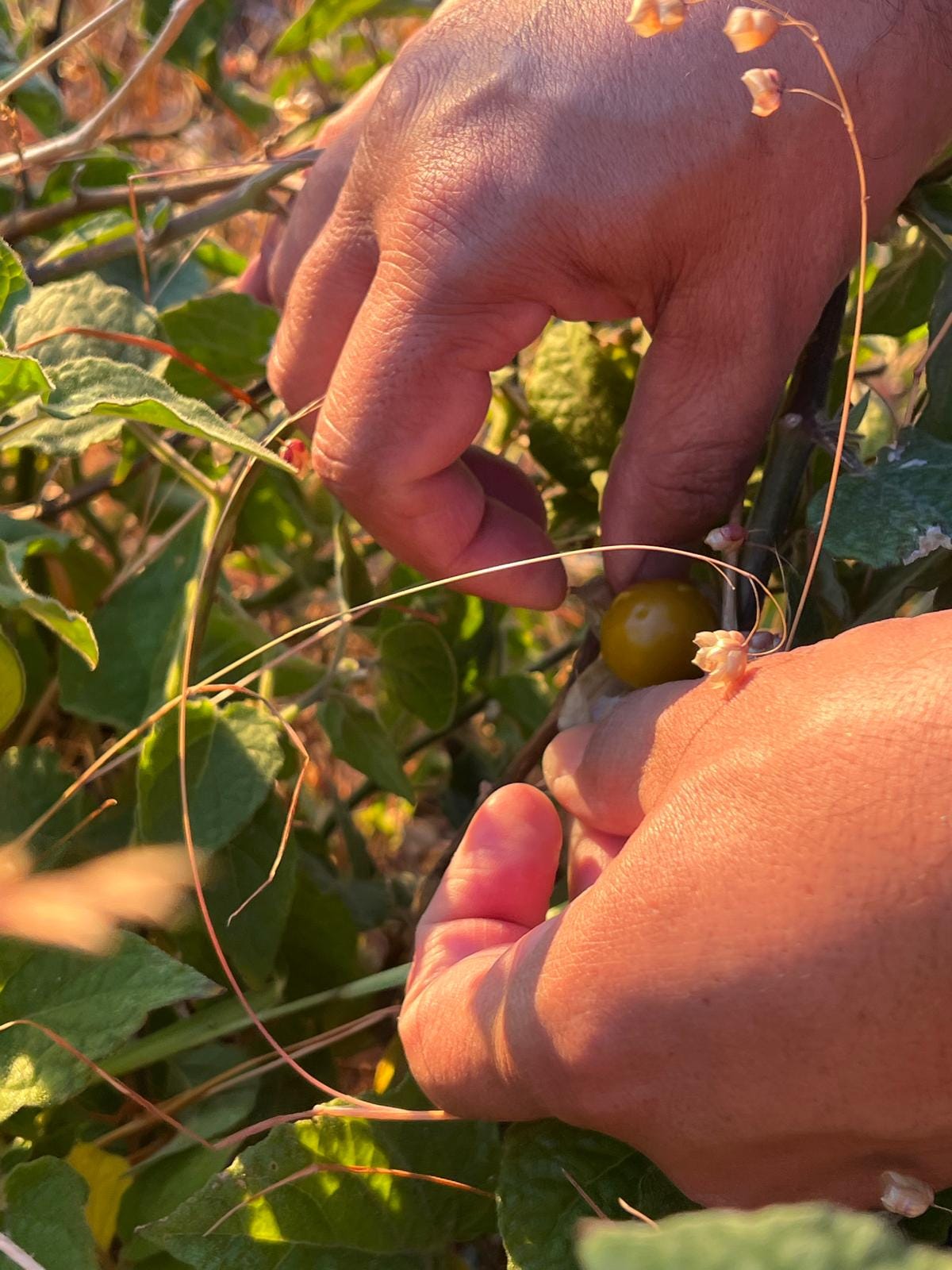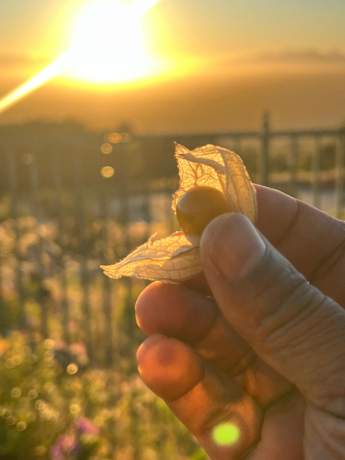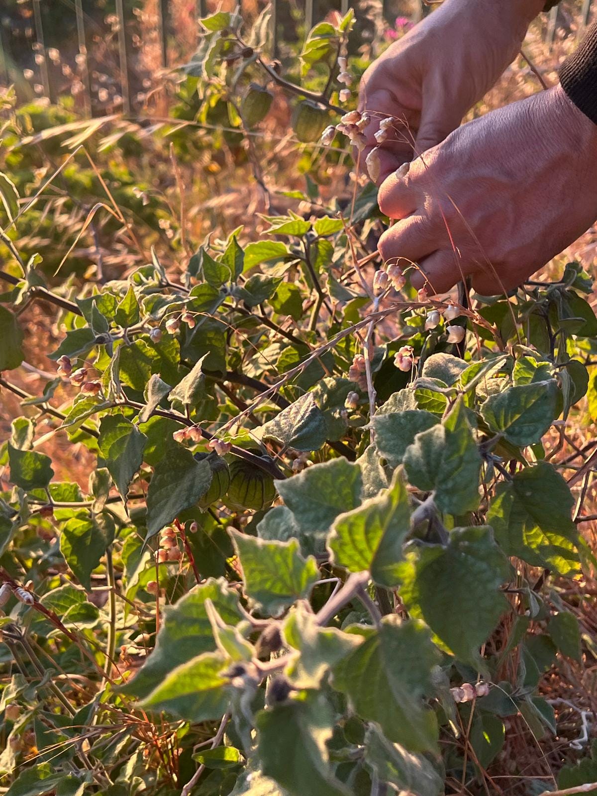 As we walked along the trail behind the memorial, my host pointed toward a cluster of plants. Some were medicinal, some edible, each with its own story. Then he stopped beside a patch of small golden spheres wrapped in delicate, papery husks: Cape gooseberries.